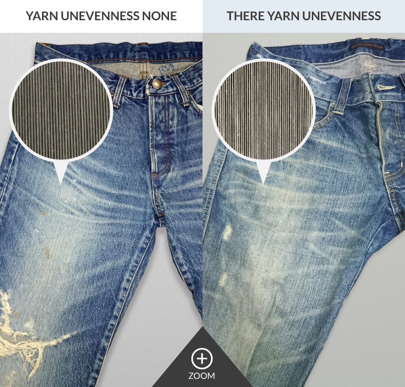 Nearly half century before we started producing denim, there was no spinning technique to produce yarn with a uniform thickness so each yarn naturally and unintentionally had some thick and thin parts. This eventually became the sought-after natural vintage look in denim.